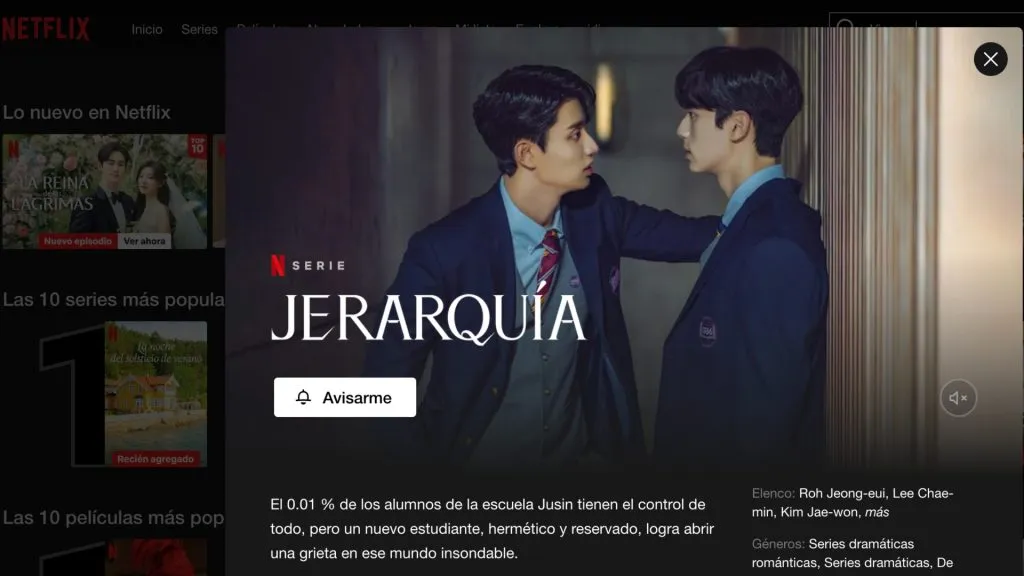 La serie ‘Jerarquía’ (Hierarchy) se estrenará en Netflix entre la última semana de abril y la primera de junio. La serie protagonizada por Roh Jeong-Eui y Kim Jae-Won ya aparece anunciada en la plataforma de streaming, por lo que su lanzamiento está cada vez más cerca, aunque aún no tiene una fecha oficial.
