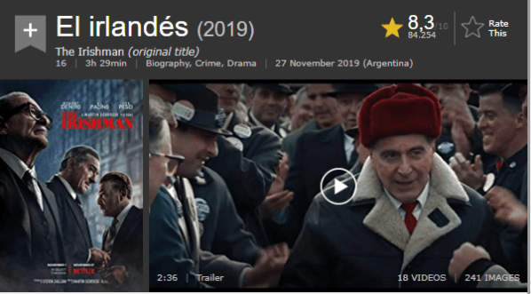 A una semana de su estreno en Netflix, muchos usuarios ya pudieron disfrutar del nuevo film protagonizado por Robert De Niro, Al Pacino y Joe Pesci.