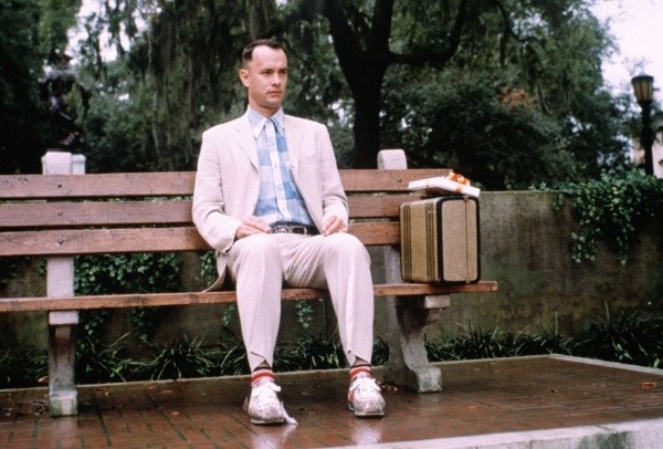 Tom Hanks es Forrest Gump, un hombre ingenuo que resulta estar en medio de casi todos los hechos más importantes de los sesenta y setenta.