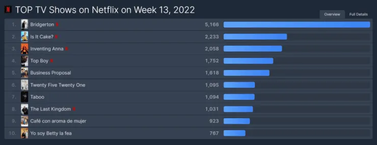 En el último informe, quien había sorprendido al mundo fue ¿Es pastel?, un reality sobre pasteleros que debían representar de la mejor manera diferentes objetos de la vida cotidiana y así engañar a un jurado para luego obtener dinero. Sin embargo, fue un furor de apenas unos días, ya que FlixPatrol muestra que Bridgerton es ahora el líder del Top semanal.