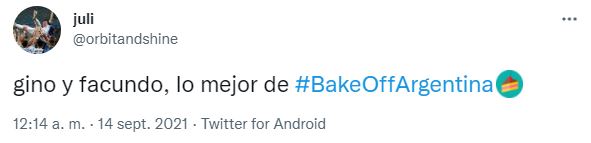 Pero aparentemente, algunos participantes lo tomaron con mayor diversión que otros. Gino y Facundo, por ejemplo, comenzaron a trabajar juntos en la torta del primero de ellos. Mientras cocinaban, no pudieron evitar reírse, cantar y ponerse a bailar. La conductora se acercó y les marcó: “¿Están de boliche? ¿Qué hacen? Quedan 10 minutos nada más para que termine el desafío”.