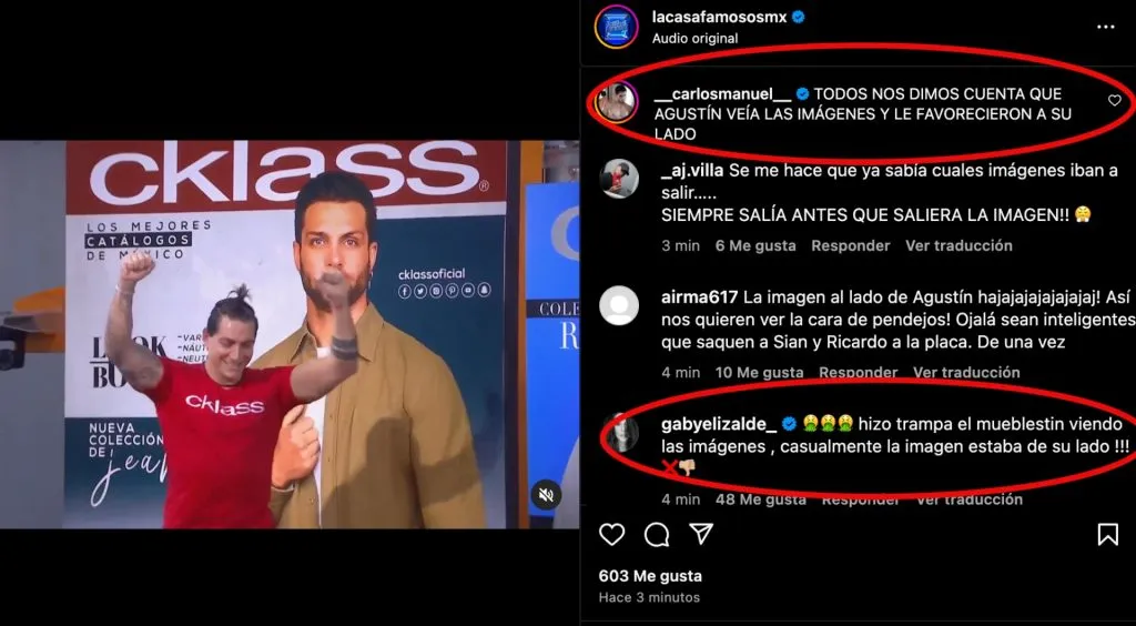 Durante el juego, La Jefa le llamó la atención al menos en dos ocasiones a Agustín por estar mirando el tablero del piso y no tener la mirada al frente, el influencer más tarde reveló a sus compañeros de equipo que puso atención y memorizó en dónde estaban las figuras, lo que le dio ventaja sobre Gala. Cuando estaban frente a la pantalla, no tenía la vista al frente tampoco, todo el tiempo estuvo viendo el tablero en el espejo, por lo que incluso salió antes por la última imagen.