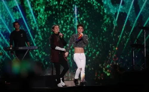 Joaquin y Emilio prendieron fuego el escenario cuando cantaron “Es por ti”, entre otras canciones.Como siempre mostraron su cariño por el público y se acercaron a saludar a sus fans, quienes le regalaron a Joaquin una bandera con los clásicos colores de LGBT.