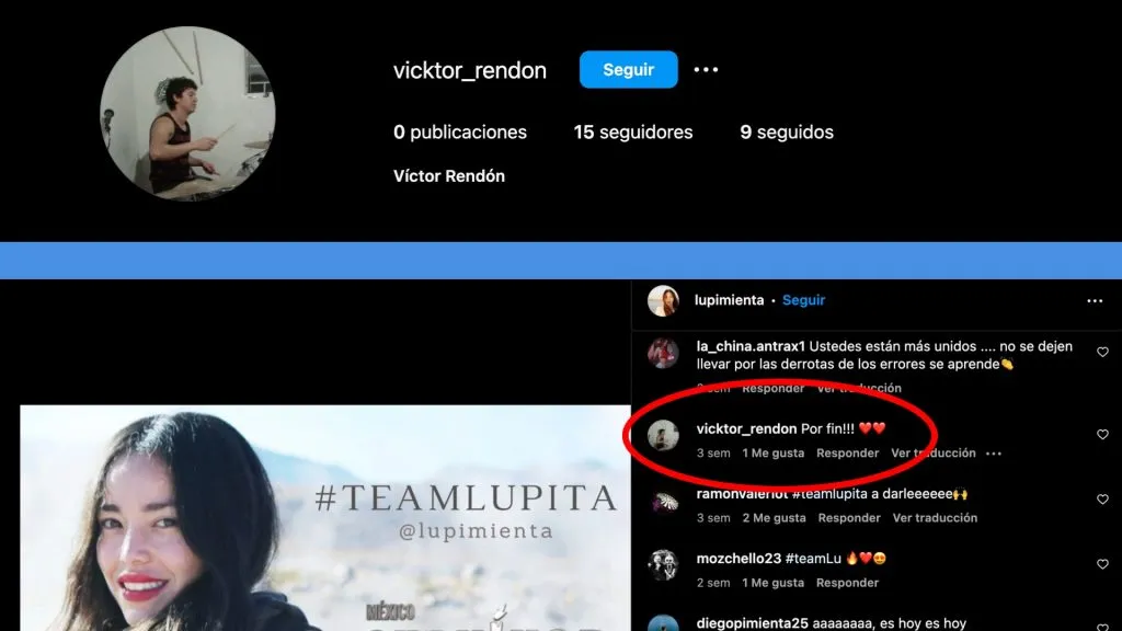 El novio de Lupita Becerra (Lu Pimienta) se llamaría Vicktor Rendon, el joven es quien lanzó en Facebook la publicación de apoyo y también ha escrito comentarios con corazones en el Instagram de la participante. Sus cuentas en redes sociales son privadas, pero en su foto de perfil se deja ver que es músico, ya que aparece tocando la batería. Hasta el momento, él no ha reaccionado al romance de Lu y Lobo.